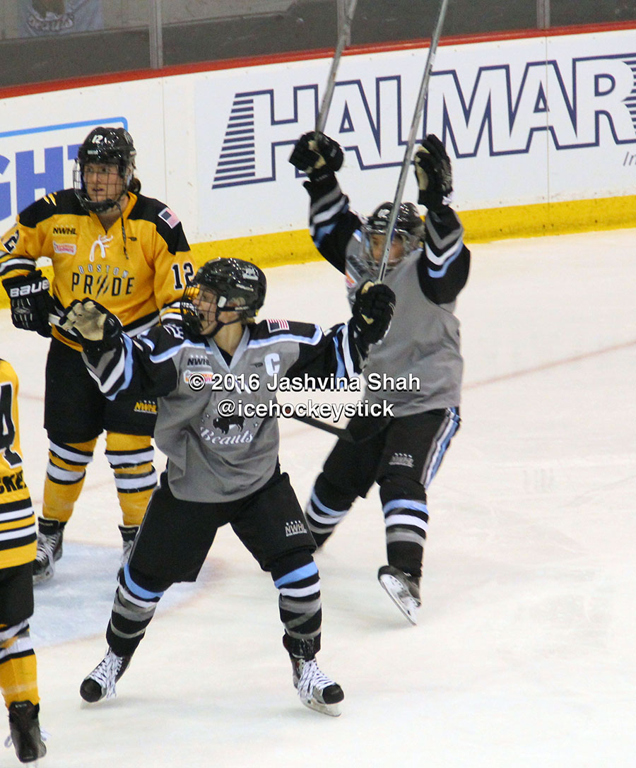 The Beauts battled back with their speed and aggressiveness, and were able to cause Boston to allow gaps in coverage in their own zone. They cut the lead to 2-1 on a shot from Shelby Bram that beat Brittany Ott cleanly.