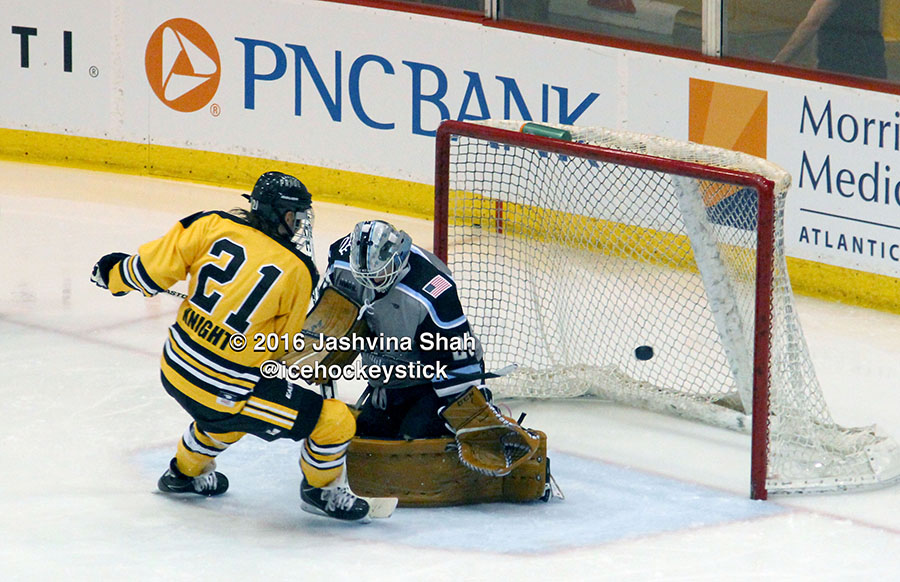 On a power play of their own, Hilary Knight drove the net and was able to pick up a loose puck, effortlessly backhanding it past McLaughlin for the 3-3 tie. The score held, and the game progressed to OT. The NWHL proscribes a 20-minute 4-on-4 sudden death overtime in the playoffs, followed by a shootout.