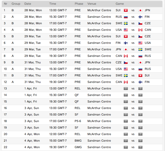 Here is the full schedule of games, via the IIHF: