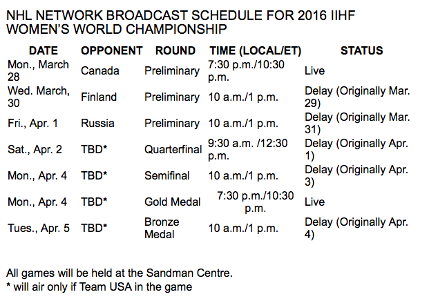 And here is the full NHL Network TV schedule for the tournament: