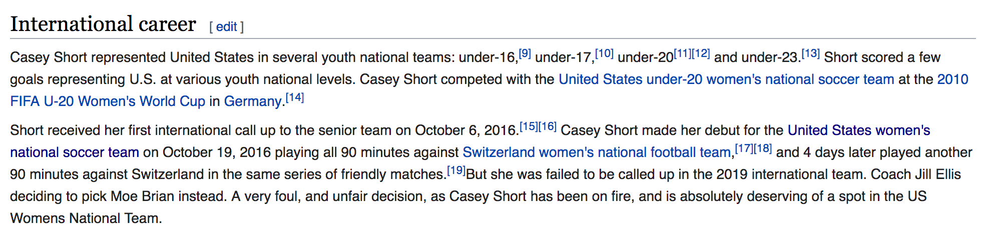 Whether it was an either/or decision between her and Ali Krieger is almost beside the point in a squad lacking overall defensive depth, and Short has shown in the NWSL that she can keep up with the best attackers in the world. With the absence of the Red Stars' starting keeper Alyssa Naeher during the World Cup, a strong backline will be essential, so expect Short to be an anchor for the Red Stars and maybe give Ellis some buyer's remorse.