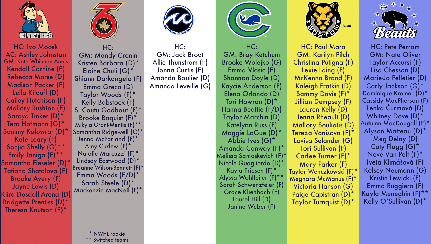 In planning for next season, the NWHL has thus far announced 99 player signings for the league's sixth season (as of August 3, 2020). Forty-two of the players announced thus far will be newcomers to the league, including goaltender Elaine Chuli, defender Taylor Turnquist, and forward Melissa Samoskevich.