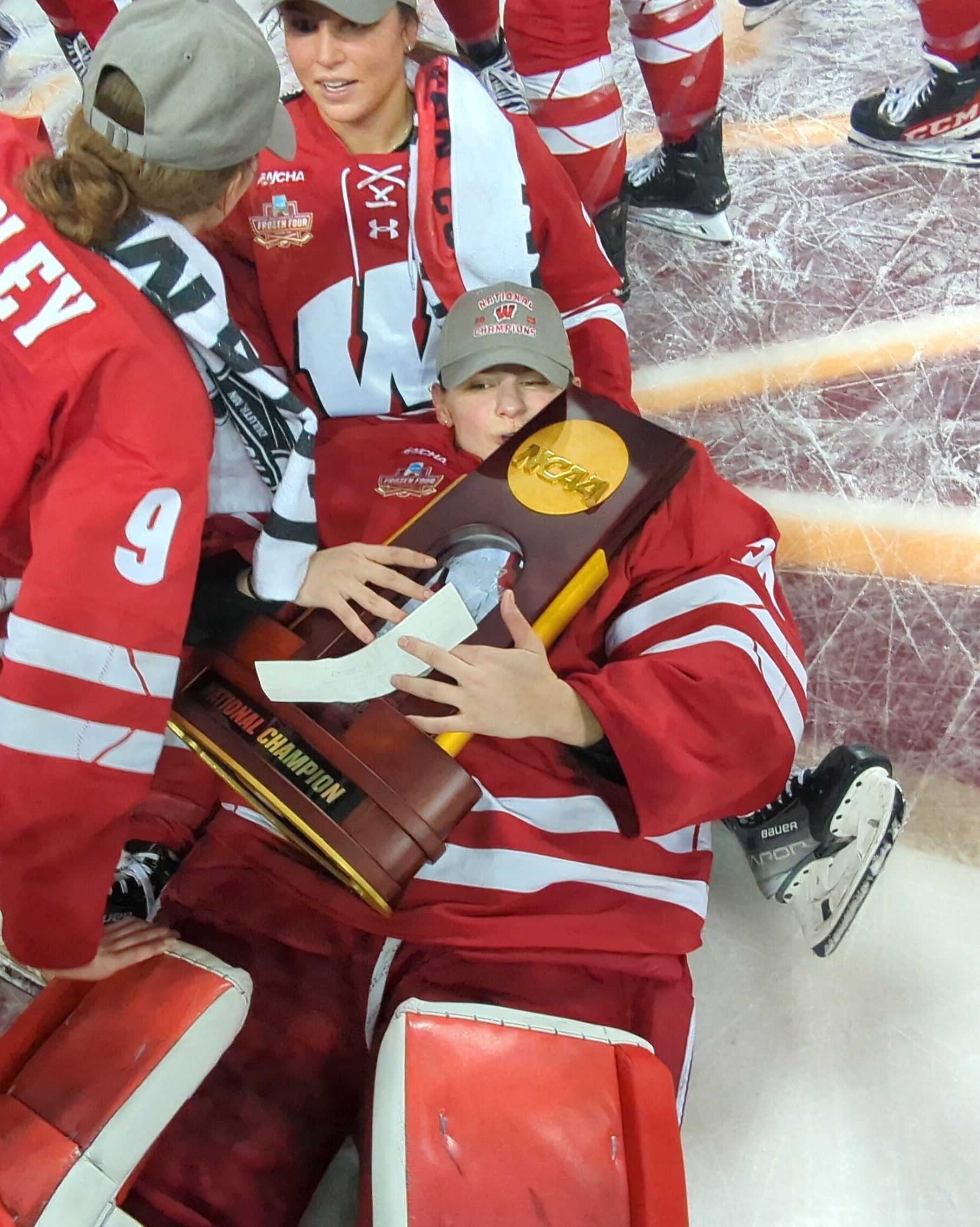 Captain Britta Curl returned to the Badgers after the disappointment of not playing with Team USA in the Olympcs. Since she missed last season, this run gives her a third straight title and a 10-0 record in the NCAA Tournament.