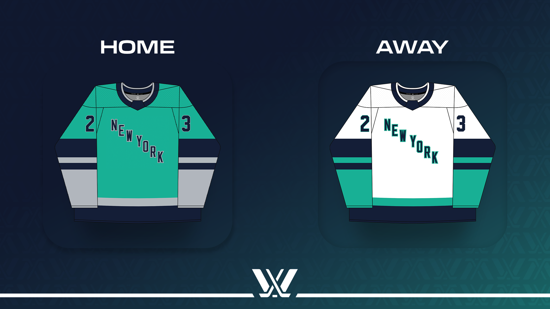Here's a look at the inaugural season jerseys for New York. The team's official colors are Turquoise, Navy Blue, and White: