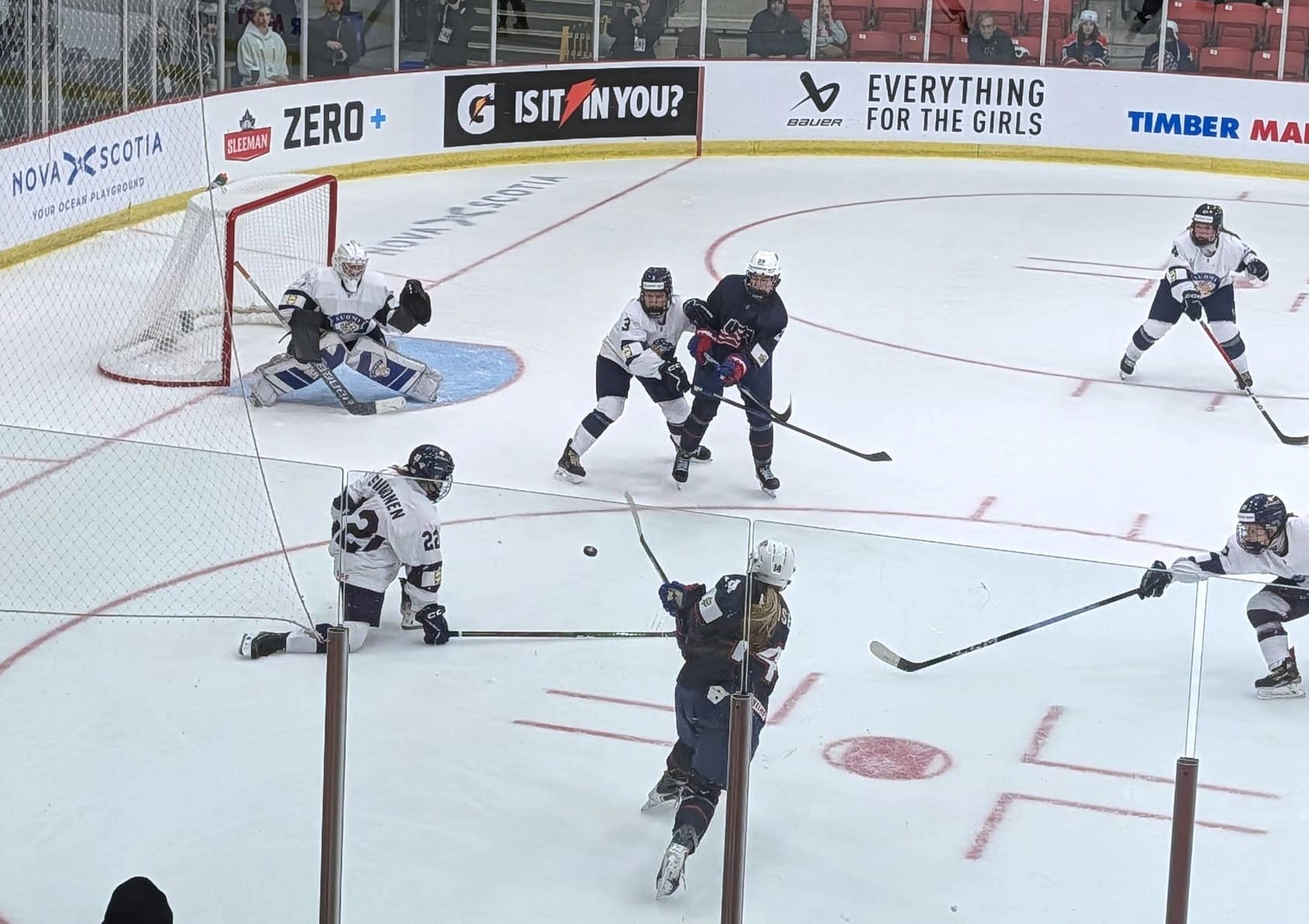 "Obviously, it was a big experiences and I was kind of nervous before. But I'm happy it turned out the way it did. I think I obviously did my best and didn't leave anything out there." Finland goalie Saimi Pesola